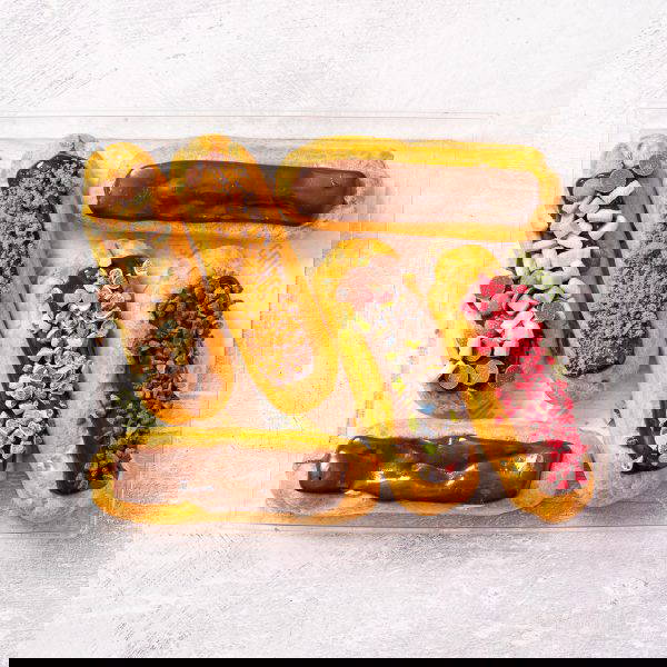 Go PLUS: a Sandwich or Roll, a bag of Tyrrells Root Vegetable Crisps, Fresh Fruit Salad Pot and a Sweet Treat