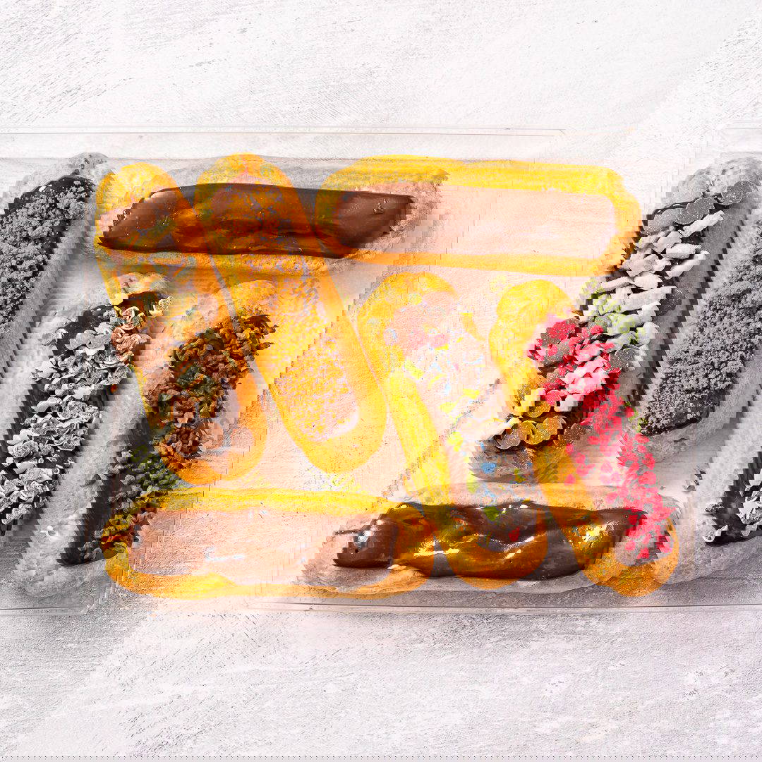 Includes: 1 Twix Mix, 1 M&M, 1 Biscoff, 1 Raspberry, 2 Chocolate